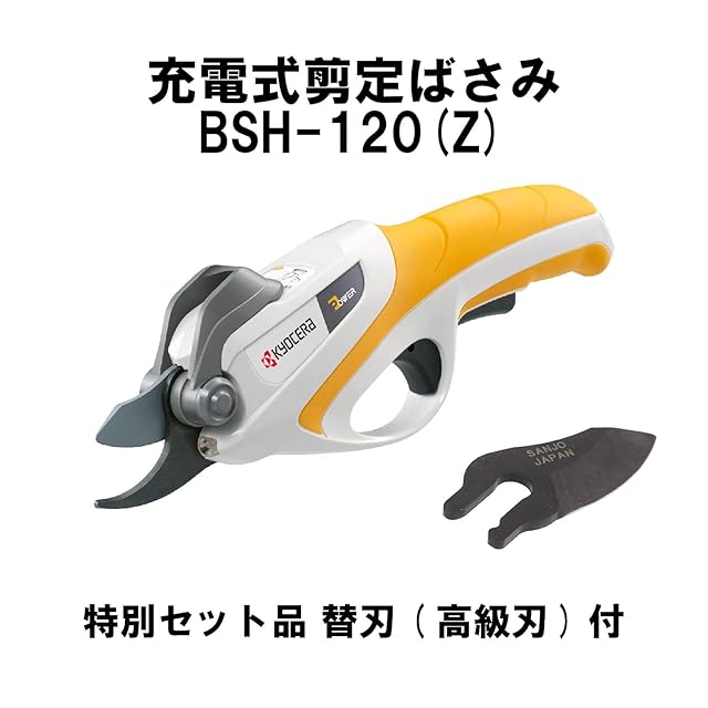 京セラ(Kyocera) 旧リョービ 充電式剪定ばさみ 高級刃セット BSH-120(Z) 4988670 【特別セット品 (日本製の替刃(高級刃)1本付) 庭木の枝をストレスなくスパっと切断できるので年配者や女性に最適】 最大切断枝径12mm 充電時間60分 1充電あたり350カット 軽量600g リチウムイオン3.7V 日本製ブレード | つむぎ屋