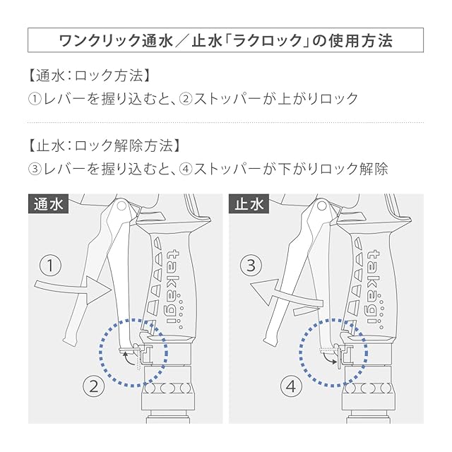 「ラクロック」レバーの握り具合だけで、簡単に連続通水・止水が可能
