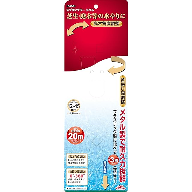 特徴:散水の高低角度を変えて散水距離を調整できるメタル製のスプリンクラー