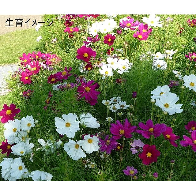 コスモス・センセイションのレッド、ピンク、ホワイトそれぞれを個別に採種し、種子精選後に混合にした種子です。(混合で播種して混合で採種した種子ではありません。)