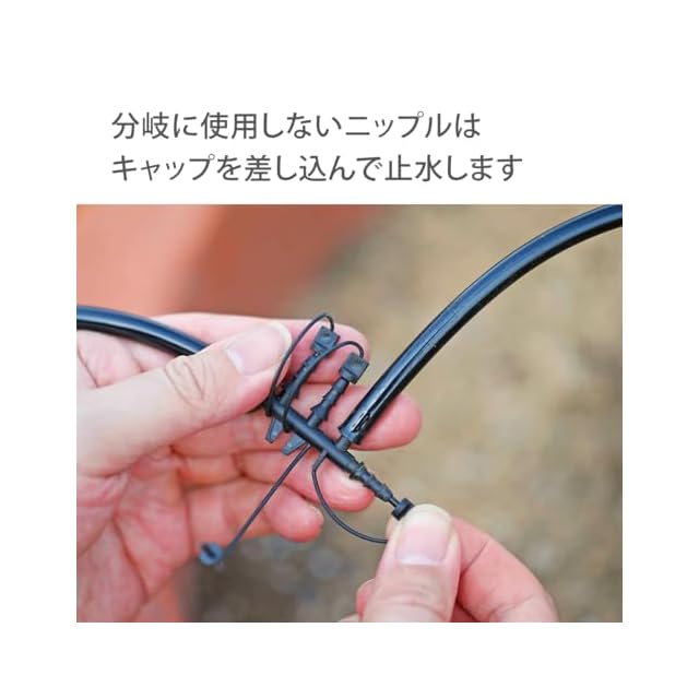 4mm水やりホースの接続アイテムと点滴チューブの先端を止水するアイテムをセットにしています。