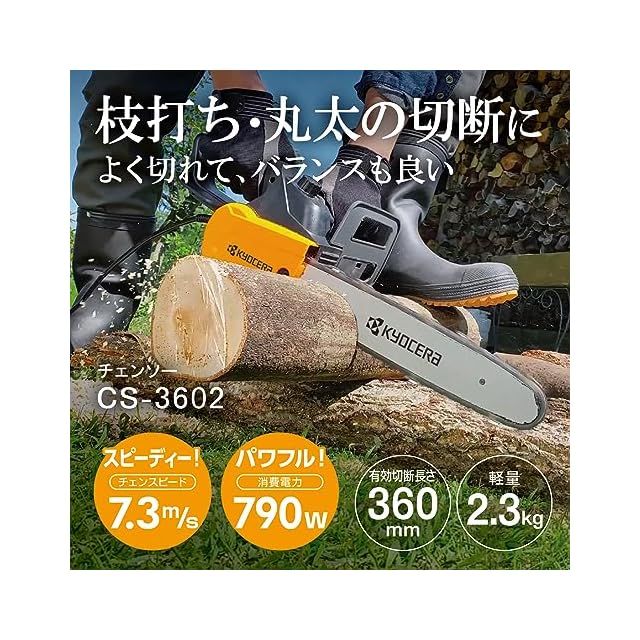 京セラ(Kyocera) 旧リョービ チェンソー CS-3602 616755A 616752A 有効切断長360mm 【本体の重心近くを持てるハーフトップハンドル採用でバランス良く正確な切断】 有効切断長さ360mm 自動給油 オイルリターン機構 セフティスイッチ 枝打ち ガーデニング 伐採 丸太切断 | つむぎ屋