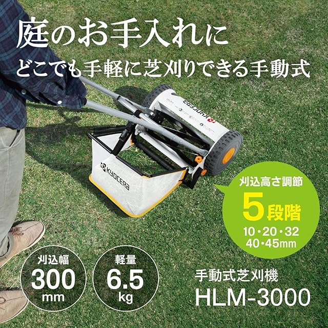 京セラ(Kyocera) 旧リョービ 手動式芝刈機 HLM-3000 リール式 662050A 【手動式なので電源や電池残量を気にせず手軽に芝刈り】 刈込幅300mm 刈込高さ調整5段階 5枚刃 | つむぎ屋