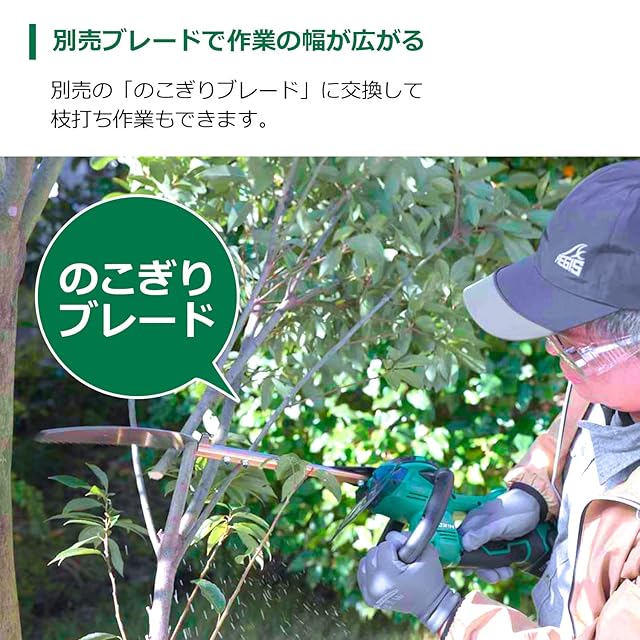 別売りのブレードに交換することで枝打ちから芝芝刈りまで幅広い作業で使える