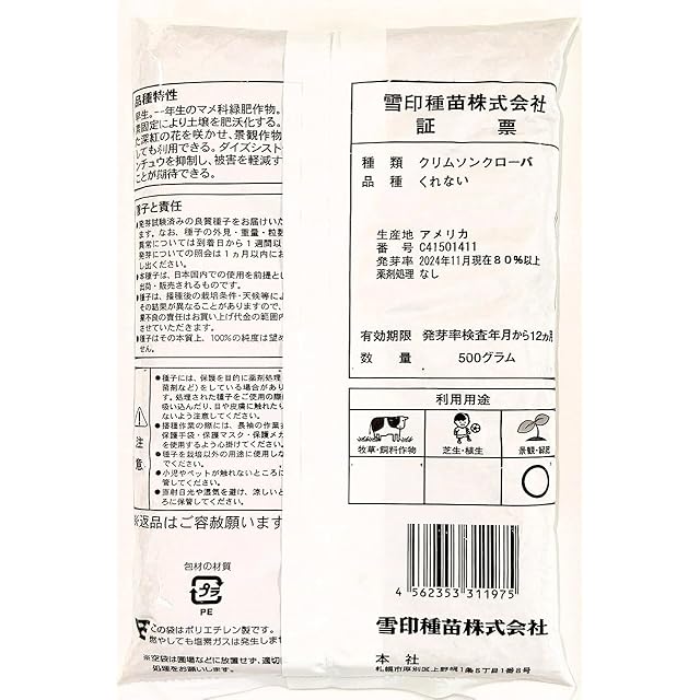 雪印種苗 クリムソンクローバー種子 品種名:くれない 500g