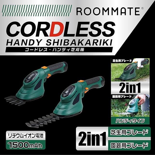 [2種類のブレード付属]庭木用ブレード芝生用ブレード、2種類のブレードが付いているので、芝刈りや草刈りのほか剪定にも使えます。