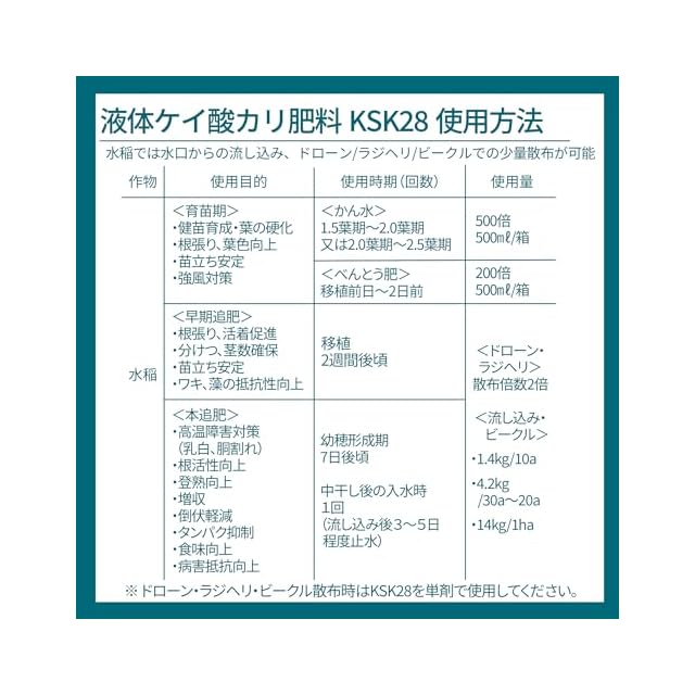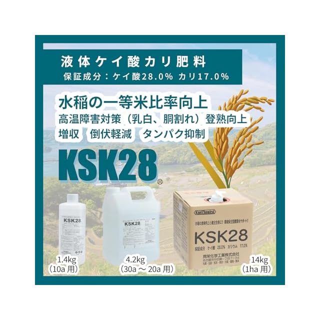 成分量 ケイ酸 28.0% カリウム 17.0%でケイ酸とカリの含有量が業界トップクラスの液肥です。