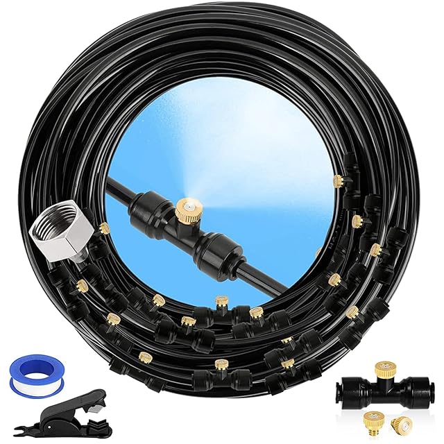 【装着簡単・DIYデザイン】散水ホースセットは30メートルで、必要に応じて自由に長さをカスタマイズできます。ミストシステムキット完全に組み立てるのは10分未満で簡単かつ迅速に設置します。組み立てが完了したら蛇口を開けるだけで植物の灌漑を開始できます。
