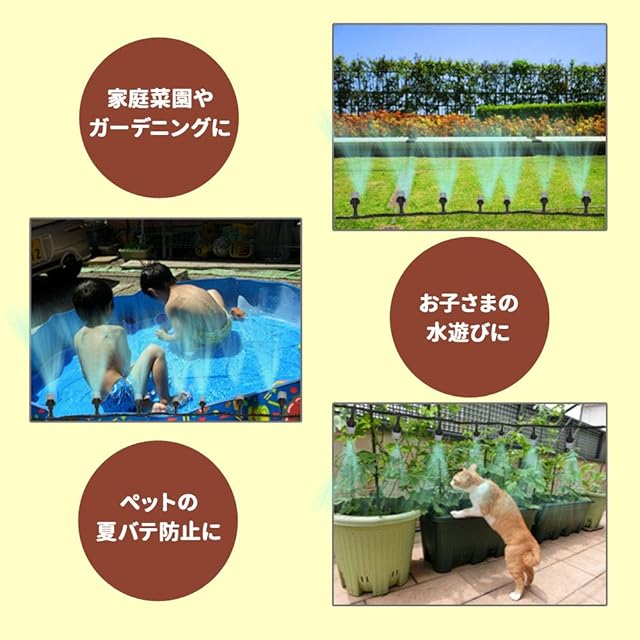 【電気代ゼロ!涼感ミストで夏を快適に】家庭菜園、ガーデニング、お子様の水遊びに。屋外用ミストシャワー。電源は必要なく、電気代不要で経済的です。シャワーから出てくる細かい水の粒子が、気化熱を利用して気温を下げるので、夏の熱中症対策にもピッタリ!