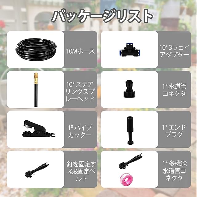 設置噴霧器 ノズル簡単:工具不要で組み立て可能、チューブの長さも必要に応じてカット調整可能