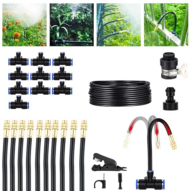 噴霧器 ノズル:360度曲げ可能なチューブで、庭のあらゆる場所に柔軟に設置できる点滴灌漑キット