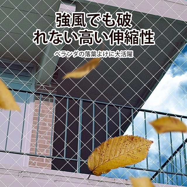 <br>【風の抵抗な材質】ネットは高強度ポリエチレンHDPE材料を採用して頑丈と軽くで、風の抵抗も殆どなく、強風は通るためちょうど良く風圧を分散出来るようで破れることがありません。 それに耐熱性が持ち、夏の紫外線に耐え、雨風による劣化に強くてホツレにくい、5年間程使えます。
