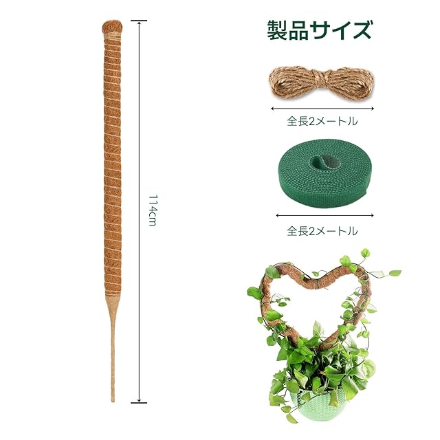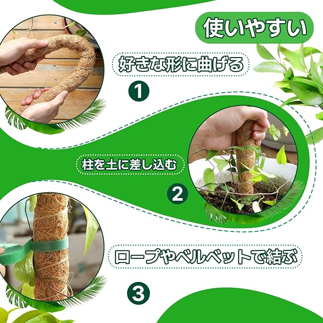 【高品質素材】ココスティック 支柱は100%天然のココナッツ繊維でできており、疎水性と通気性に優れ、植物に優れたクライミングプラットフォームを提供します。