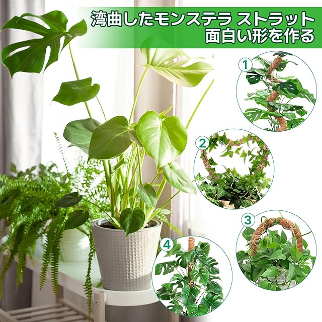 【曲がった園芸支柱】直立させたり、好きな形に曲げたりすることができ、モンステラ、ポトス、トマト、ツルなどの着生植物を植えるのに適しており、庭の美しさを引き立てます。