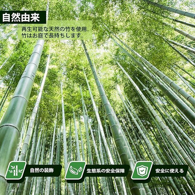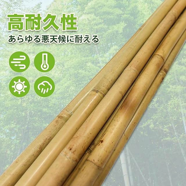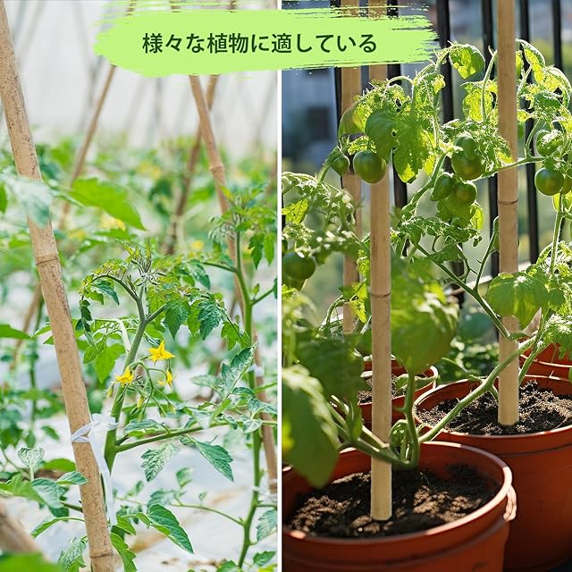 幅広い用途:竹支柱は多用途の園芸用品として、ガーデニングデザインや、トマト、ピーマン、つる、低木、草花類などの植物が登ることに適しています。植物がより多くの太陽を受けて果物や野菜がもっと実ります。