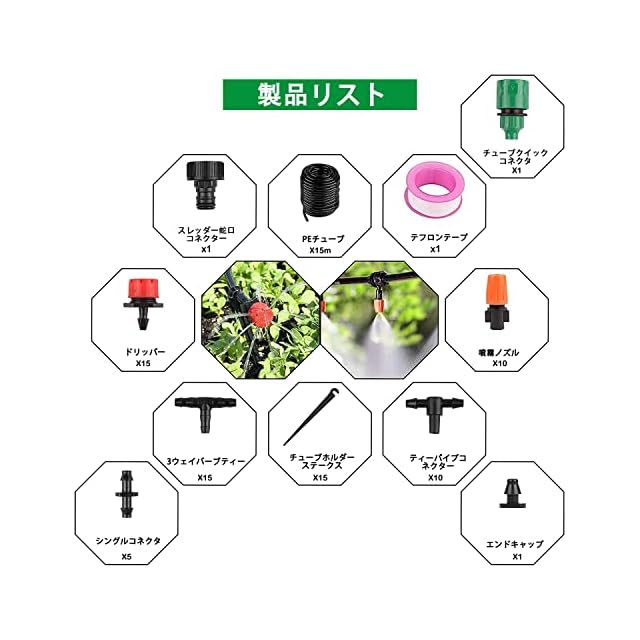 Menetop 自動散水セット 噴霧ノズル 灌漑システム 点滴ノズル 噴霧ノズル ドリップ散水 給水システム 散水用具 散水灌漑 散水ホース ガーデン 花 植物 盆栽用 家庭園芸 (15m) | つむぎ屋