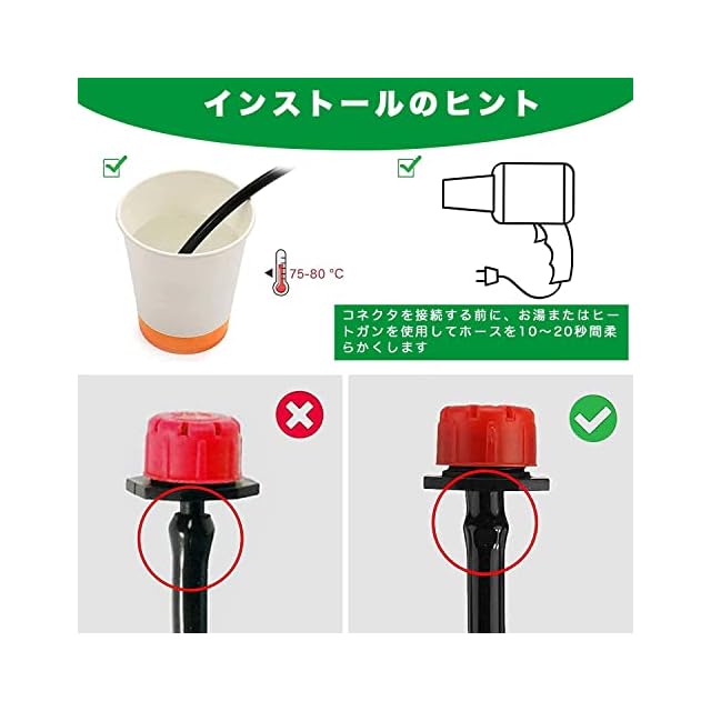 使いやすさ:このマイクロスプレー散水システムは、掘削や配管のスキルがなくても、ユーザーマニュアルを使用してインストールするだけです。