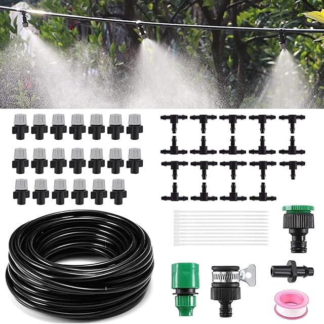 セット内容:ホース×1、ミストノズル×35(うち1個は先端用)、ホースアタッチメント×1、 蛇口アタッチメント×1、終端用アダプタ×1、結束バンド×10