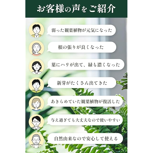 土母の効果:①弱った植物は元気になります②観葉植物の葉に張りが出ます③葉の色味が良くなり、色鮮やかになります④植付時に使用すると、根付きや根張りが良くなります⑤葉水でご利用頂く事でツヤが出ます。※ハイドロカルチャー、水耕栽培にもご利用いただけます。