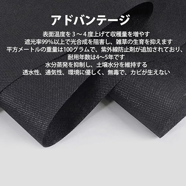 【耐用5年】最新の防草シートは高品質ポリプロピレン製で面密度100g/㎡(UV耐候剤入り)で、従来の雑草防止シートより厚みがあり、破れにくいです、100% 手作業による検査