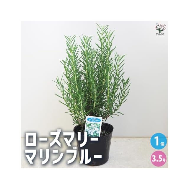 ITANSE ローズマリー マリンブルー 3.5号 1個売り【品種で選べるハーブ苗】シソ科マンネンロウ属 耐寒性常緑低木/原産地:地中海沿岸/別名:迷迭香(マンネンロウ)●強健で育てやすい立性のローズマリー。開花時期は秋~春で、濃いブルーの花が咲きます。さわやかで良い香りを放つため、料理・ティー・染色・クラフト・観賞用ガーデニングなど幅広く活躍します。 | つむぎ屋