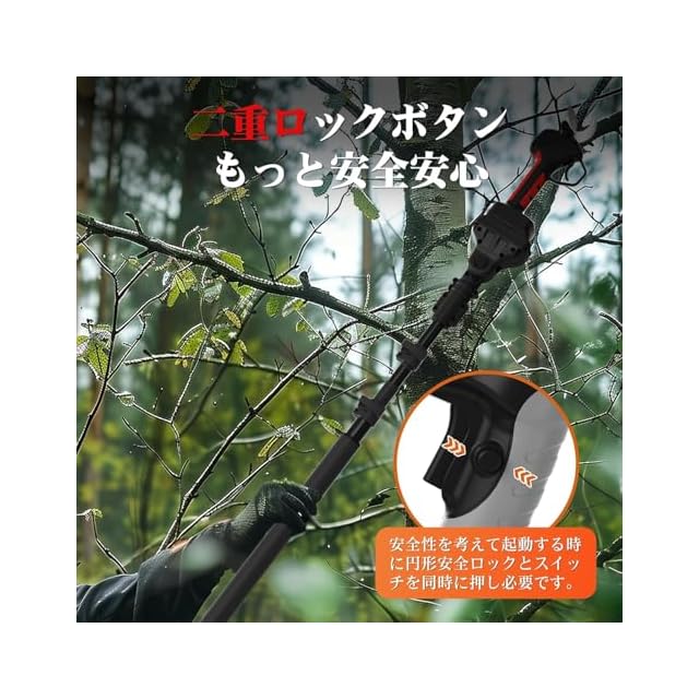 【取付簡単】:電動鋏及びバッテリーを延長レバーに入れるだけで結構です。工具は必要ありません。トリガーを2回速く引くと、アクティブになります。
