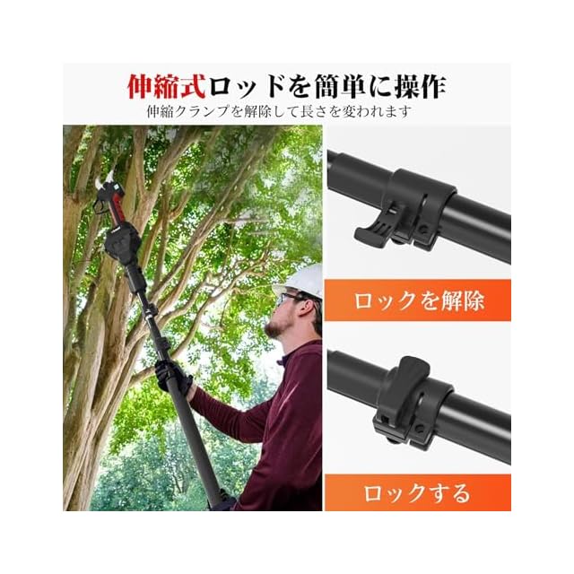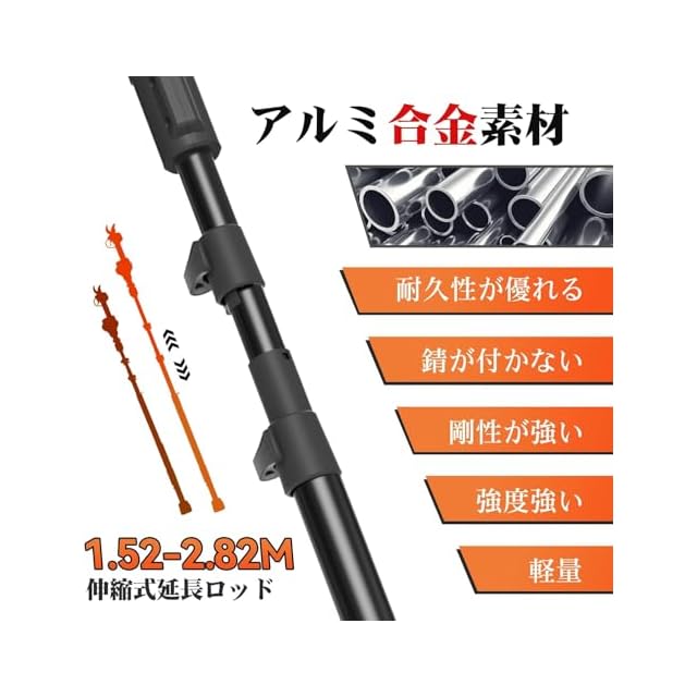 【耐久性が優れる】:電動剪定はさみの延長ポールはアルミニウム合金で作られています。丈夫で耐久性が優れています。