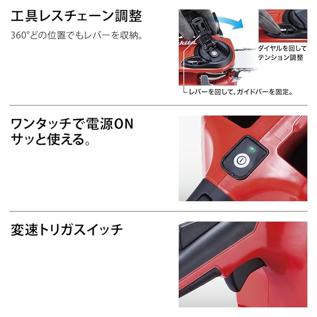 マキタ 充電式チェンソー ガイドバー400mm 赤 18V 6Ahバッテリ2本・充電器付 MUC400DGFR