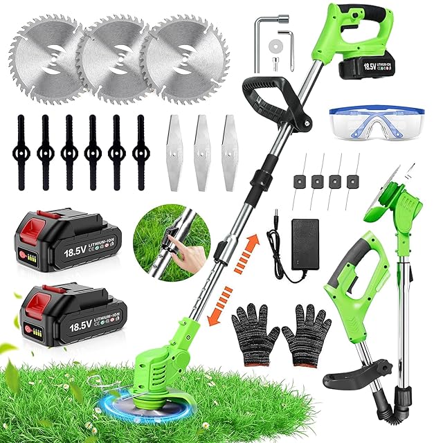 草刈り機 充電式【鈴木造園会社監修】草刈機 電動 コードレス 1.2kg軽量 小型 低騒音 電動草刈り機 ハンディ 伸縮式 折りたたみ式 18.5V 高効率チップ 純銅モーター 18500RPM 4000mAh大容量バッテリー2個 90° 3段階で角度調整可能 4種類替刃 充電式刈払機 多地形 多機能4in1 芝生/枝切り/草刈り/雑草/植木/家庭菜園 日本語説明書付(Green)
