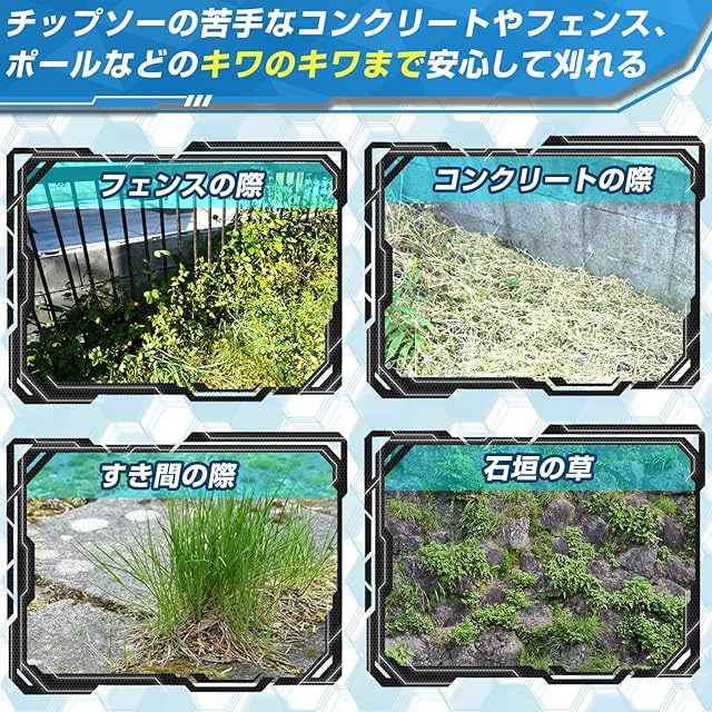 刈れる場所は・フェンスの際・隙間の草・コンクリートの際など様々なシーンで利用可能です。