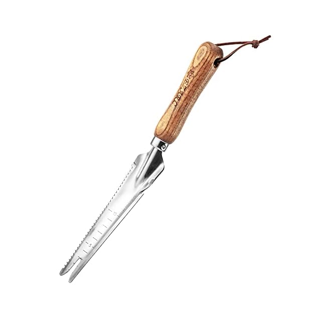 ✅【木製ハンドル】アッシュウッドで作られたプレミアムハンドルは、長期間使用の為に設計されています。手のひらのサイズにフィットするので、掘ったり、除草したり、植えたりする際に、手の痛みや疲れを軽減できます。収納に便利な牛革製ランヤード付きです。