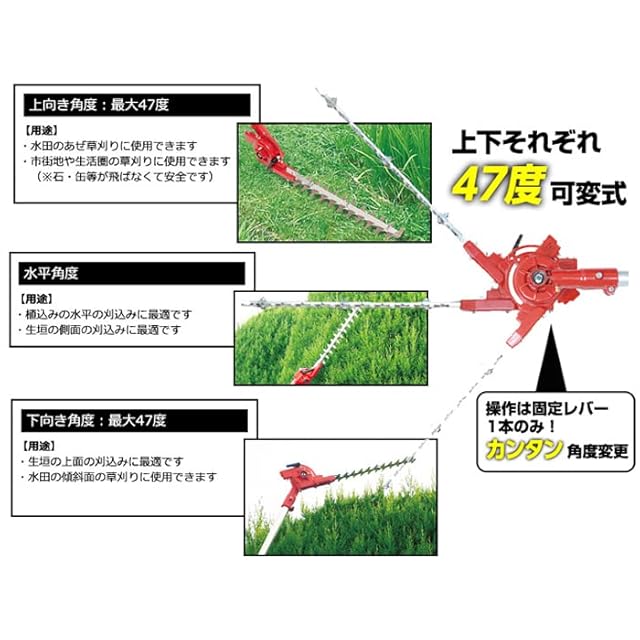 ●生垣の側面や上面の刈り込み用。●水田の畝刈用。