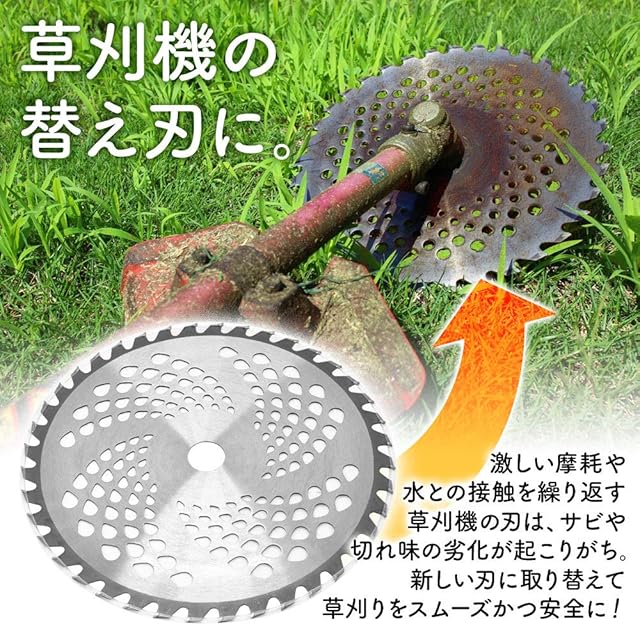 【草刈機の替え刃に】激しい摩擦や水との接触を繰り返す草刈機の刃は、サビや切れ味の劣化が起こりがち…。新しい刃に取り替えて草苅をスムーズかつ安全に行いましょう!