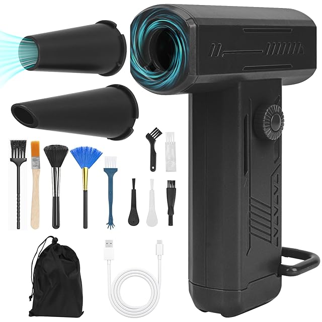 エアダスター 電動エアダスター ブロワー 150000RPM回転数 最大風速約70m/s 無段階風量調整 TypeC急速充電 4000mAh大容量バッテリー 充電式 小型 2種類ノズル付き 清潔ブラシ10枚付き LEDライト ほこり掃除 PC/キーボード掃除 車内清掃 空気入れ 焚き火おこし 日本語取扱説明書付き (ブラック)