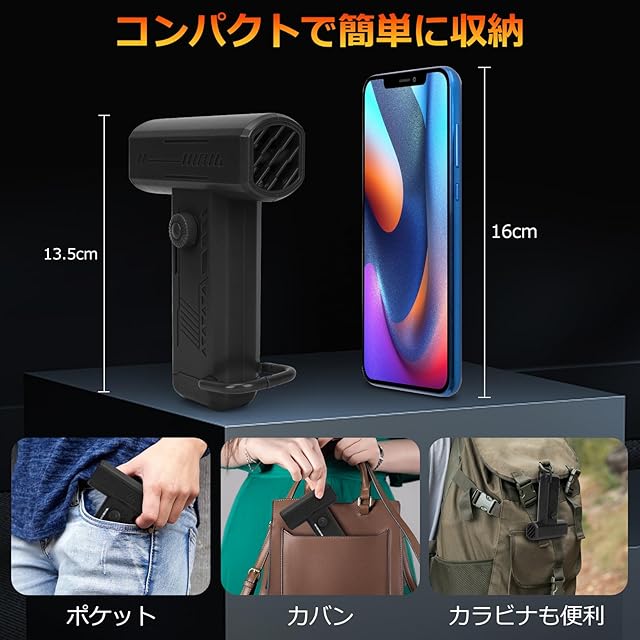 ▼ポケットサイズの革命【驚異の携帯性】 スマートフォン並みのコンパクトサイズ(約12.2×7.7cm)で重量わずか340g。専用収納ポーチに入れれば鞄の中でもかさばらず、付属のカラビナで工具ボックスやバックパックに瞬時に装着可能で、便利にサッと取り出せます。