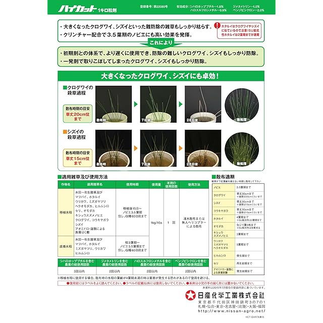 商品名:日産化学 除草剤 水稲用中後期除草剤 ハイカット1キロ粒剤 1kg