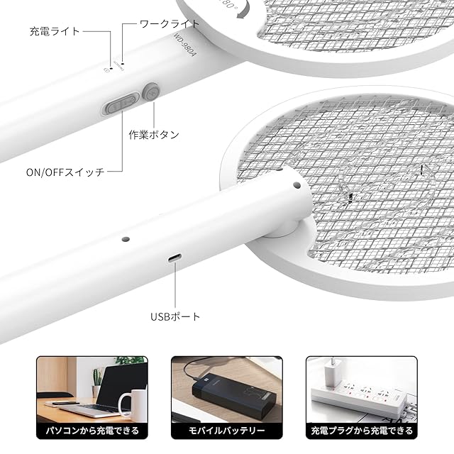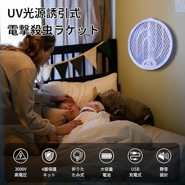 商品名:BOEN 電撃殺虫ラケット 【2025年新登場】 電撃殺虫器 折り畳み USB充電 省エネ 強力 電気ショック 4層安全ネット 虫除け ハエ退治 キッチン 寝室 オフィス 飲食店 庭 登山 キャンプ 玄関 アウトドア 室内 屋外 蚊取り