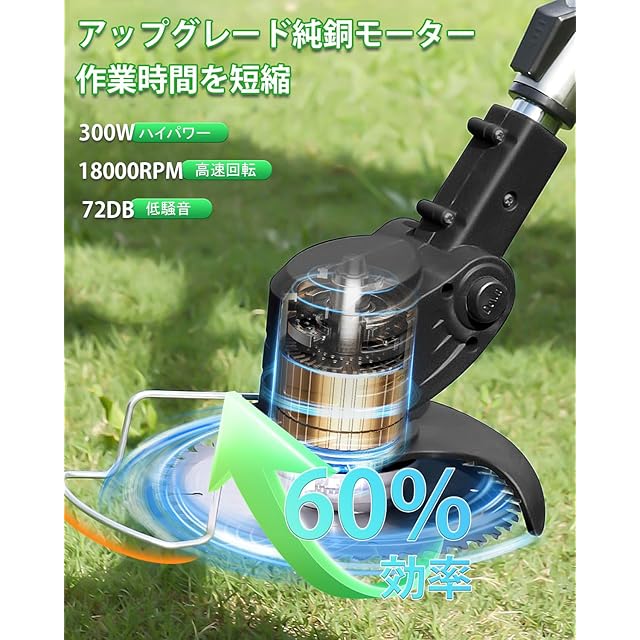 【コードレス設計・大容量バッテリー・純銅モーター】充電式芝刈り機はコードレス設計を採用しており、持ち運びが簡単で使いやすいです。 草刈り機 充電式には 6500mAh 大容量バッテリーが 2 つ装備されており、交換して使用でき、連続稼働時間は最大 60 分 (2 つのバッテリーが完全に充電された後)、広範囲の作業や作業に便利です。途中で電池が切れて動かなくなった。 広い作業場や広い庭の除草にも使えます。この電動 草刈り機は最新の研究開発技術を採用し、純銅モーターを使用しています。出力は300Wで、内蔵の純銅モーターは強力なブラシレス高速(18000rpm)DCモーターにアップグレードされ、草刈り作業が効率が大幅に向上し、最大1時間の連続作業が可能です。