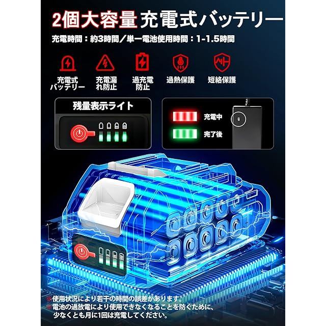【パワフルなモーターと大容量バッテリー2本のセット】充電式芝刈り機のモーターは最高回転数毎分22,000回転で、切断効率が30%向上させており、長時間の負荷でもモーターが焼けることはありません。大容量バッテリーを2本搭載しており、バッテリーには電池残量表示ランプが付いており、残量をリアルタイムでモニターできます。完全に充電した状態で、最大で3時間連続使用することができます。ガーデン、花壇、農作物などの様々なシーンにも対応し、簡単に使えます。