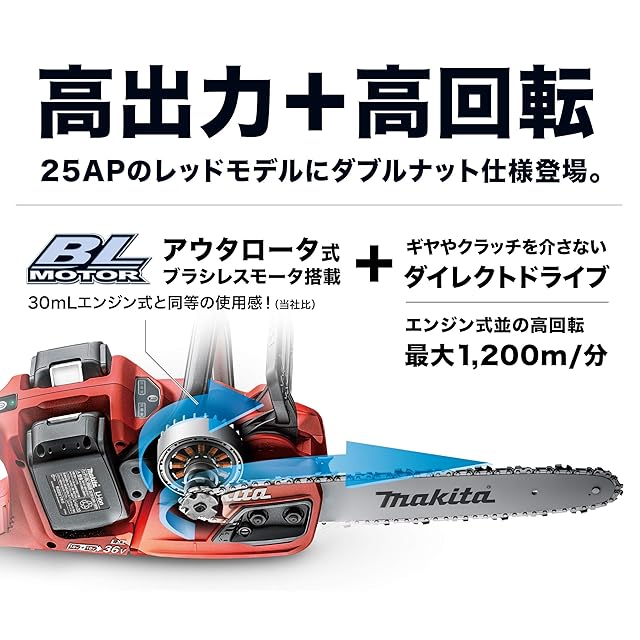 商品名:マキタ 充電式チェンソー ガイドバー400mm 赤 36V バッテリ充電器別売 MUC405DZFR