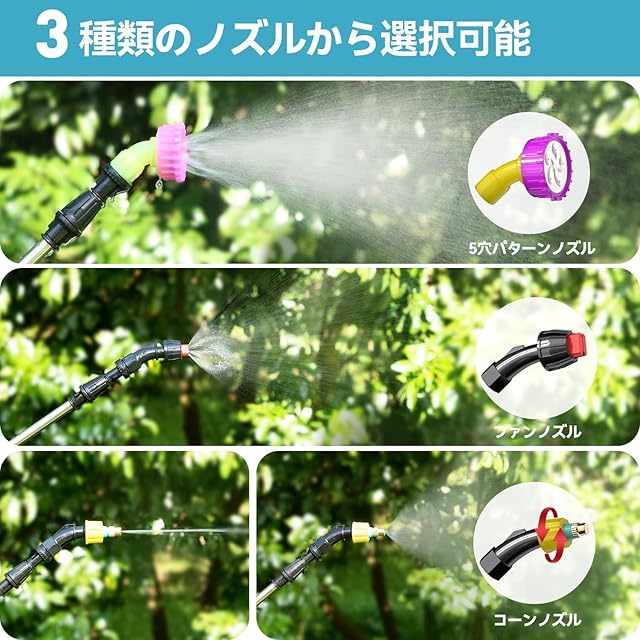 【伸縮ワンド&3ノズル】EIANLON 電動スプレーは1つの伸縮棒と3つのノズルを備えており、精確なスプレーに使用されており、ガーデンや芝生のケアのさまざまなニーズに対応しています。格納式スプレーワンドは最大60CMまで伸びることができ、手の届きにくい場所へのスプレー。