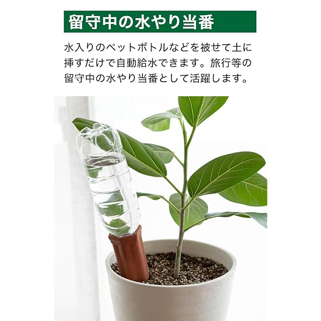 ✅【留守中の水やり当番】水入りボトルを容器に取り付けて土に挿すだけで自動給水できます。旅行や出張時の留守中の水やり当番として活躍します。