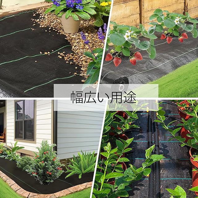 幅広い用途:雑草防止シートは環境に影響を与えず、様々な場所が使用されます。応じてハサミで必要な形にカットできます。建物周辺、庭、果樹園、菜園、花壇、路肩、空き地などに幅広く使用して、雑草の生育を抑制し、雑草の悩みを解消します。