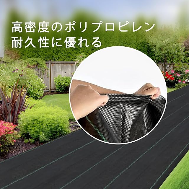 高品質:防草 シートは高品質ポリプロピレン製で、表面密度120g/m²までの、耐候剤と親水剤を含むなので、破れにくく、耐久性に優れ、繰り返し使用できます。この除草シートの遮光率が98%以上になる厚みで製造しています。