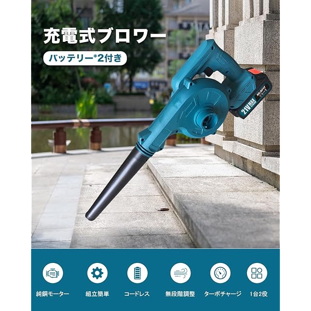商品名:ブロワー 充電式 バッテリ一*2付き 強力 ブロワバキューム コードレス 吹き飛ばしと集塵1台2役 軽量 コンパクト 小型 ミニ 園芸設備 落ち葉 掃除機 庭掃除 洗車 清掃 集塵 取扱説明書付き