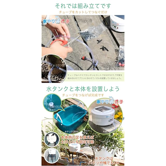 商品名:FUNKS 水やり花子 電源水道不要 スプリンクラー タイマー ソーラー自動水やり器 給水器 散水 ノズル タイマー 1週間