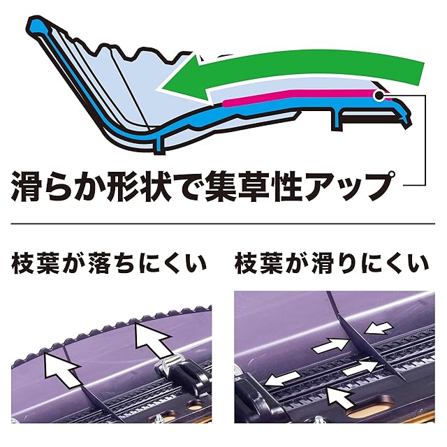 美しい切り口、スムーズな切断「新・高級刃」刃付け角度の鋭角化と精密な刃先合わせで鋭い切れ味の「拝み刃」形状。三面研磨、高剛性ガイドバー採用。特殊コーティングでヤニが付きにくく、サビにくい。枝葉をスムーズに取り込む、新・チップレシーバ。刈った枝葉を集めやすい形状。