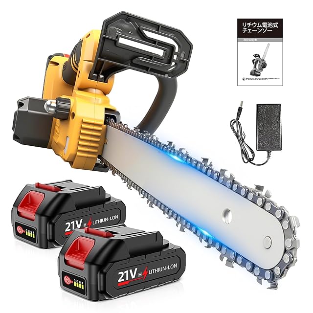 【交換式電池】このチェーンソー 充電式は「取り外し可能な電池」の特徴を備えており、ユーザーにとって大きな便利さを提供しています。それは1つの充電器と2つの取り外し可能な電池を備えており、ユーザーはこれらの電池を交互に使用して、電動チェンソーの連続動作時間を延ばし、仕事の効率を高めることができます。さらに、このチェーンソーは、マキタリチウム電池にも互換性があり、複数のモデルをサポートしています。これはユーザーに多くの選択肢や柔軟性を提供しており、異なる使用シーンやニーズに応じて適切な電池モデルを選択できます。この設計は製品の有用性を高めるだけでなく、電池が切れたときに迅速に入れ替えることができるため、長い充電待ち時間を必要としません。