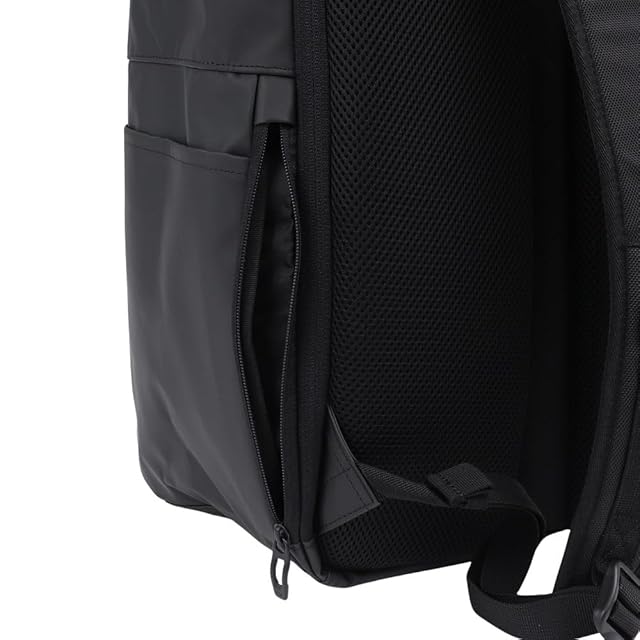 40リッターの大容量サイズ。耐久性、耐水性の高いコーティングポリエステル素材を採用したバックパック。前面に芯を入れることで自立を促し、メイン収納の開口も大型のファスナーを配置することで取り出しやすさ、使いやすさを追求したデザイン。上部の起毛ポケットにはアイウェアなど小物を収納できる。背面のラップトップ収納にはメイン収納とサイドからもアクセスが可能。ショルダーストラップは独自開発の波型EVAパッドを採用し通気と衝撃吸収性に優れ、体にかかる負荷を軽減させる構造。ボトムにはバックパックと一体化しているナップサックが出し入れ出来、シューズや汚れた衣類など分離収納出来る。各所に散りばめられたディテールが機能性をアップ。(夜間の視認性を高めるリフレクター引手、ボトルポケット、PC収納、ストレッチチェストベルト、持ち運びやすいトップハンドル)