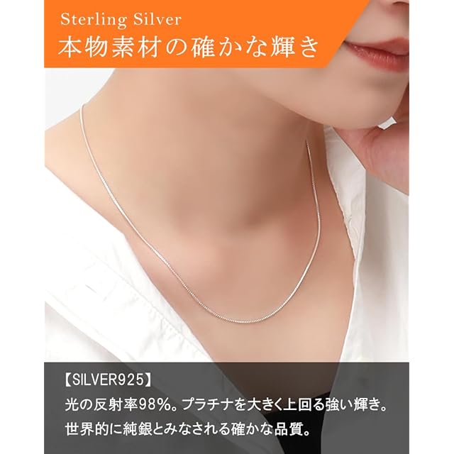 【サイズ】幅約0.9mm、長さ45cm、金具 引き輪、チェーン端(受け側)金具の大きさ 約3.2mm【素材】Silver925(ロジウムコーティング)【付属品】収納ポーチ